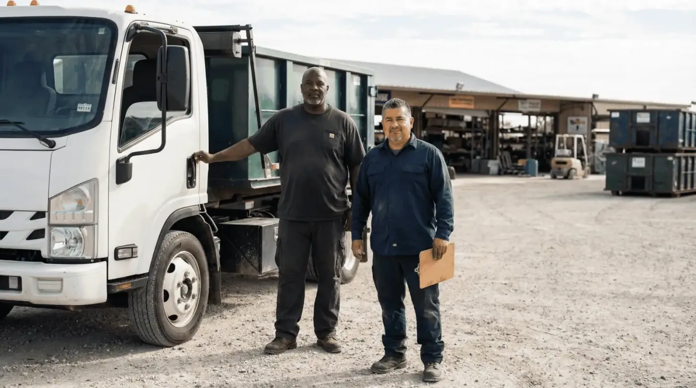 He bought a single used roll-off truck and started serving small residential jobs off Goforth Road and Stagecoach Trail. Word spread quickly: Miguel showed up when he said he would, kept his equipment clean, and treated every customer like a neighbor.